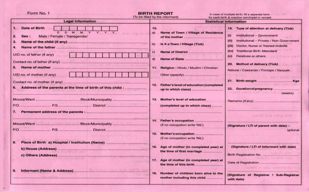 - Form No. 1 – Birth Report [ English Form | Bengali Form ]