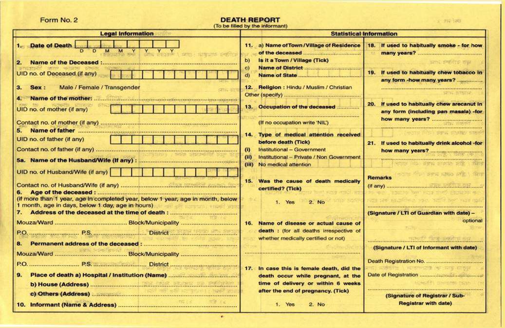 - Form No. 2 – Death Report [ English Form | Bengali Form ]